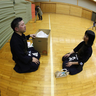 これからも剣道を続けて欲しい。たとえ違うスポーツの道へと進んでも、たまに竹刀を握って思い出して欲しいという先生からの想いを込めて竹刀が贈呈されました。
